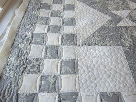 This is Janet's quilt. She made this for her son and she let him pick the quilting pattern. He wanted all over swirls. I love how it turned out.