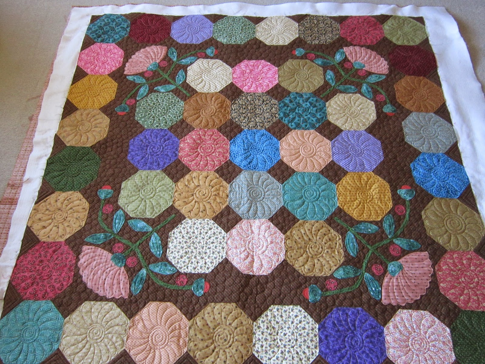 This quilt was made by Karie Jewell of Two Kwik Quilters. She has some really fun patterns available. I was so lucky to get to custom quilt this fun quilt. Anyone who knows me knows I love to quilt solids! They really show off the quilting! I did some fun quilting in the blocks. Lots of swirls and pebbles.